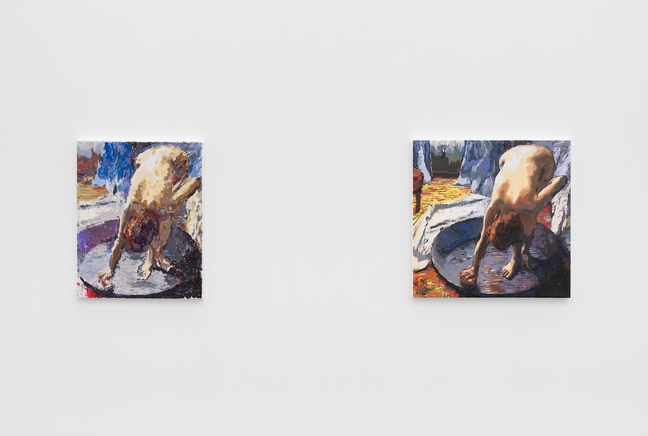 Til preview på den britisk-pakistanske kunstner Reba Mayburys udstilling, havde vi lidt tømmermænd og var mere optagede af, hvordan vi mindst akavet kunne få fat i en danskvand uden at forstyrre velkomsttalen end faktisk at lytte til den. Hvilket viste sig at være til vores fordel, da vi endte oppe i udstillingen, der var stram og kompleks og perfekt overraskende. Her stod vi blandt mal-efter-tal-malerier af Edgar Degas’ lurende blik på sexarbejdere, der vasker sig efter endt arbejde – malet af Mayburys subs (kunstneren arbejder selv som dominatrix) – samt en duft, der skulle minde om Johnny Depp, for til sidst at opdage, at vi blev overvåget, mens vi selv lurede på kvinderne i færd med deres toilette.
