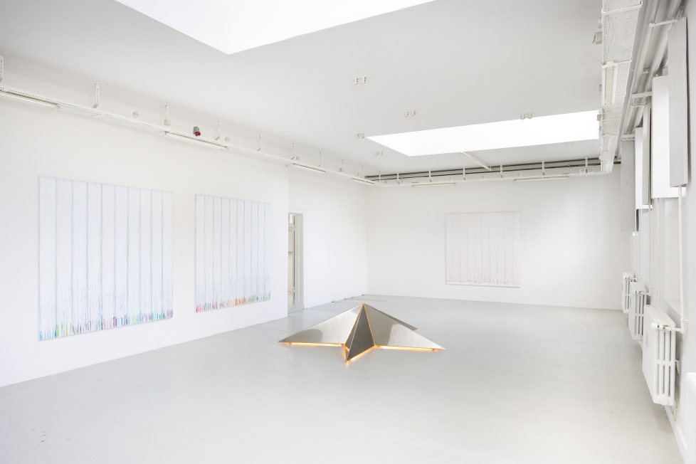 Bianca D’Alessandro laver landets flotteste galleriudstillinger, basta! Sensommerens med Viera Collaro var ingen undtagelse. Rummet var tyst og hvidt og kun oplyst af dagslyset fra ovenlysvinduerne. De hvide malerier fremstod som bløde, kalkede ruder tilsat en ulmende puls fra de farver, der glimtvis trængte gennem de øverste laserende lag. Et varmt orange lys smøg sig ud på gulvet fra undersiden af en stor, strålende stjerneformation, der var landet midt i rummet. Mere kapel end sci-fi og mere humanisme end minimalisme. Ahhhh! [dybt, forløsende suk]