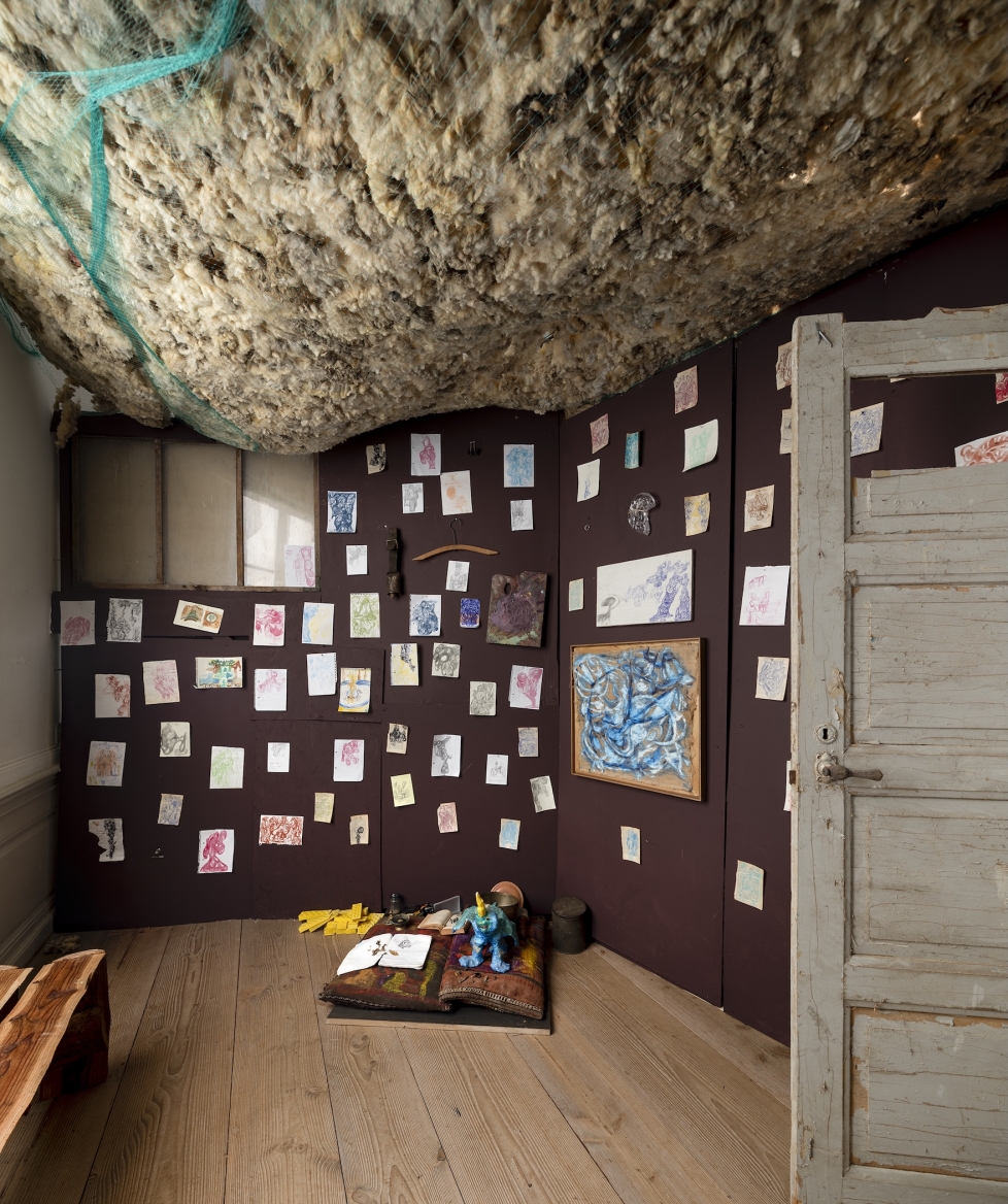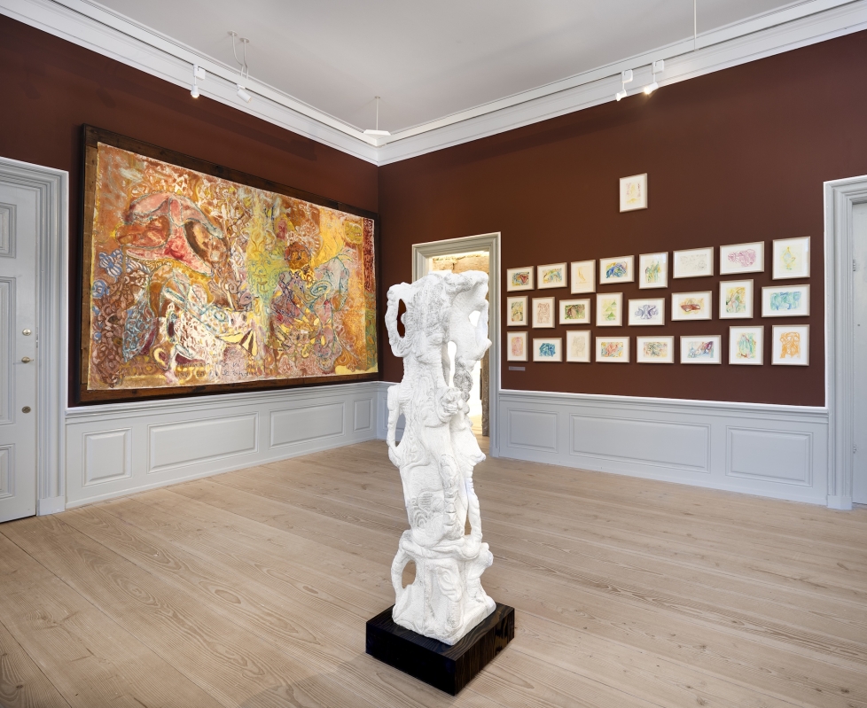 Magnussen er autodidakt billedkunstner, hvis karriere blev hard-launchet via DR-programmet Kunstnerkolonien i 2022 og som med Sophienholm-udstillingen ønsker «at føre intuitionen tilbage til ære og værdighed på kunstscenen». Som udgangspunkt en fin ide. Den institutionelle hang til at formidle sønder og sammen er en kolossal hæmsko for beskuerintuitionen, og mon ikke også kunstnerintuition udfordres af de forventninger til kontekst, diskurs, koncept som velsagtens både fondsansøgninger og kunstakademier kultiverer? Det er i hvert fald ikke uinteressant at tænke lidt over.