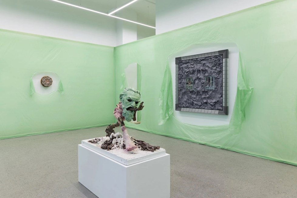 Man kunne ellers fort brukt en hel anmeldelse bare på å beskrive de ulike materialene i Holens skulpturer og veggrelieffer, som sprer seg utover galleriets lokaler ved Slottsparken i Oslo omsvøpt i en syrlig vårgrønn byggeplast så energisk at man nærmest slurpes rett inn fra gata. Den flortynne plasten danner en egen arkitektur i gallerirommet, der den syntetiske fosterhinnen er spjæret på aktuelle steder for å danne gjennomganger eller åpninger til den vegghengte kunsten. Hver gang døren åpner seg rasler den faretruende og blir en effektiv understreking av luftstrømmene som hele tiden beveger seg i rommet. Også utstillingstittelen refererer til ulike måter å kontrollere luftstrømmer på, enten det er hvordan verden beveger seg inn og ut av kroppens hulrom, eller gjennom fysikk og hjelpemidler. Holens interesse for representasjoner som krysser grensen mellom kroppens innside og utside synes tilbakevendende, og inkluderer for eksempel de glassblåste gjengivelsene av former hentet fra hjerneanatomien som ble vist i soloutstillingen Null på Billedhoggerforeningen i 2022.