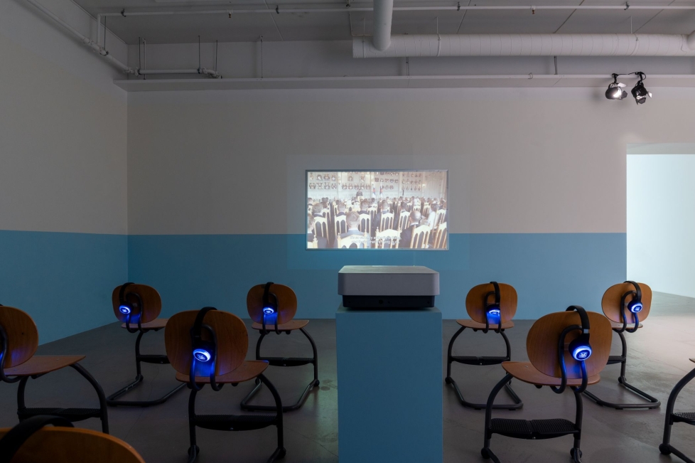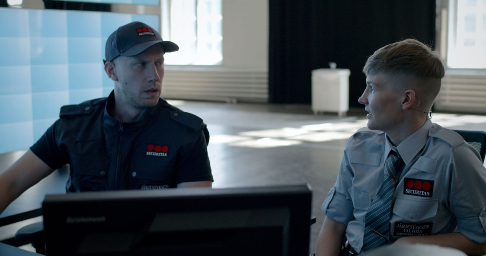 Men, dette er så klart en digresjon. Takala er innom flere mer eller mindre tvilsomme jobber – Securitasvakt (Close Watch, 2022), for å ta et eksempel av flere, byr på andre strukturelle utfordringer, og andre måter å lage kvalm på. Og jeg tar meg i å savne et annet videoarbeid fra den Norsk-Finske foreningen i 2010, hvor hun dokumenterer tilværelsen til en gjeng skandinaviske gutter som bor på hotell i Bangkok og tjener sine penger på å spille poker online for vanvittige summer – noe som forutsetter at all våken tid går til å studere spillesystemer og kalkulere sannsynlighetsgrader (Players, 2010). En tvers igjennom fiktiv måte å finnes til på, og nøyaktig like meningsløs som eksemplet med min venn som i panikk måtte forlate kontoret han var blitt parkert i. Samtidig skjønner jeg at den ville falt utenfor i sammenhengen her på Kunsthall Trondheim, siden kunstneren selv konsekvent befinner seg bak kamera og ikke agerer, eller ikke-agerer, selv.