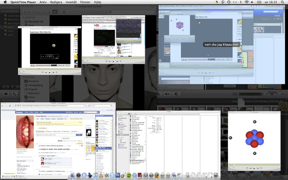 Det som gör presentationen intressant är att den ändå skaver. Titeln Out of Character antyder att Sjöberg, även i sin egen utställning, är «utanför sig själv». I den tvåkanaliga videon Between These Lines (2012/2026) ser vi en plastikkirurg rita upp operationslinjer för en bröstförstoring direkt på hennes kropp som hon sedan tatuerar in. En brutal bild av hur människan förtingligas när hennes kropp blir en vara. Det äldsta verket, videon Dead Stars (2009), är en mediearkeologisk miljö i form en datorskärm med en mängd öppna fönster, medan de senaste verken består av infertilitetspreparat placerade på en roterande displayplatta; ett effektivt sätt att gestalta konstnärens känslokarusell inför sin ofrivilliga barnlöshet.